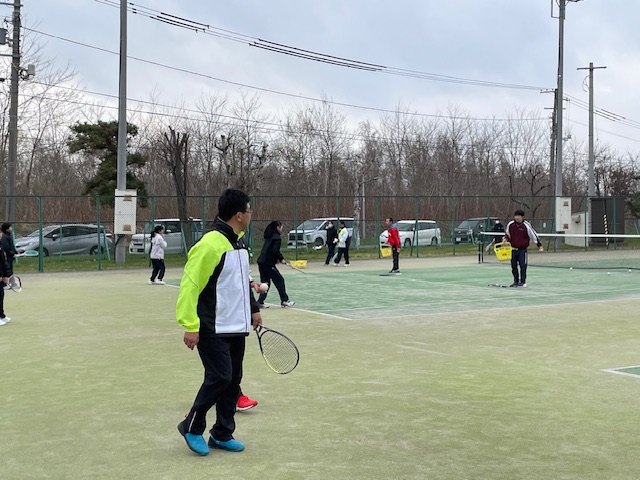 午前中に光陵中体育館を訪ねると、外のコートでテニス部が山田さんの指導のもと、5/5(月)の大会を目指して練習をしていました。今年は、テニス部の入部者はいつもの年と比べると若干少ないようで、テニスコートにあふれるような感じではありませんでしたが、逆に少数精鋭で、力を付けていくかもしれません。ちょっと寒い中での練習となりましたが、生徒たちは頑張って練習をしていました。