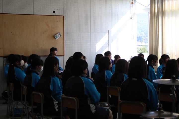 先週に引き続き好天に恵まれた土曜日。しかし、大会が多かったことや天気が良く練習試合に向かったりしていたようで、市内の巡回の様子では、思ったより活動が少なく感じました。最初に訪問したのは伊達中、体育館やグラウンドでは活動がなく、音楽室に行くと、吹奏楽部が活動をしており、3年生が定期演奏会を終え、後輩にメッセージは伝えている場面を見せてもらいました。今回は学校の場面ではなく、いつもと違った風景を写真に収めることができました。