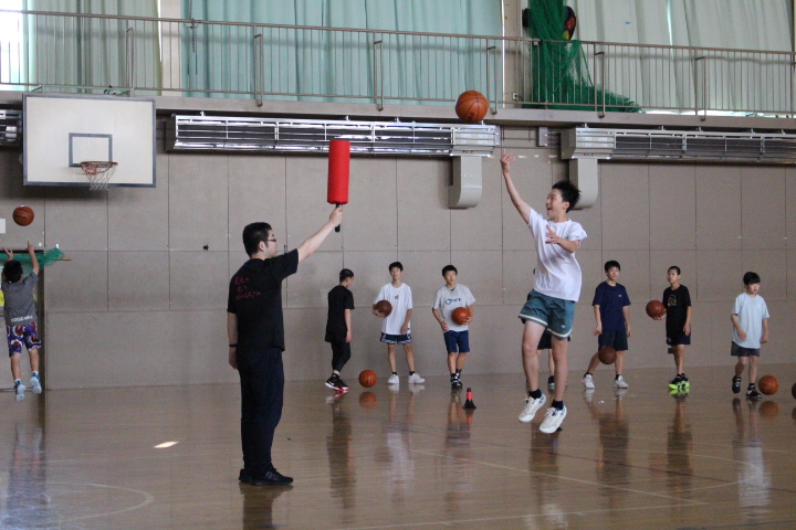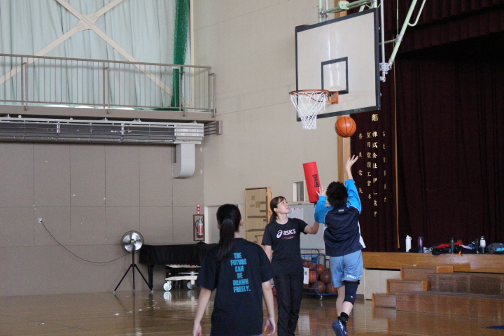 午後の伊達中体育館では、バスケ部が新人戦に向けて練習をしていました。練習の様子を見ると、相手ディフェンダーを避け、体幹を崩さずシュートを打ち、ゴールを決める練習をしていたように感じました。
