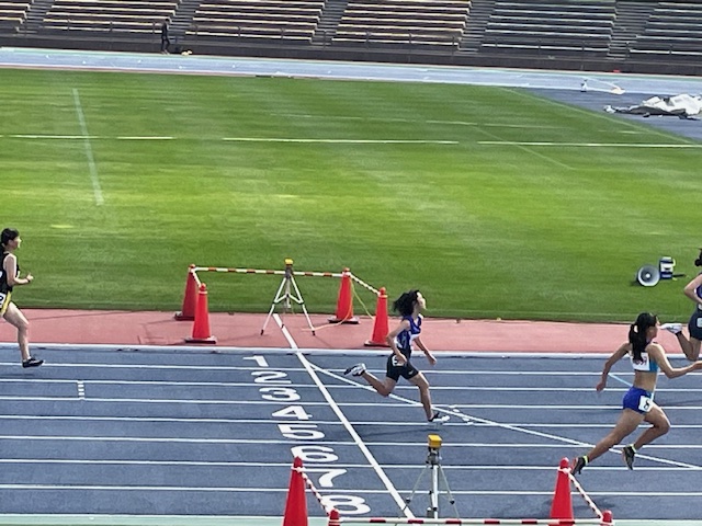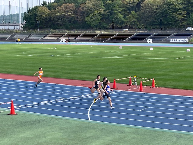 さすがに100mなどは、高校生や大学生、一般の方とも一緒に走ることから、差を付けられてゴールすることが多く、一見可哀そうにも見えましたが、速いランナーに引っ張られるのと、追い風も少し強かったことから、記録は若干伸びているように思えました。役員として大会運絵に当たっている村瀬コーチからは、光陵の全道に参加した2名は、安定してきて良い記録をキープできているという話を伺いました。