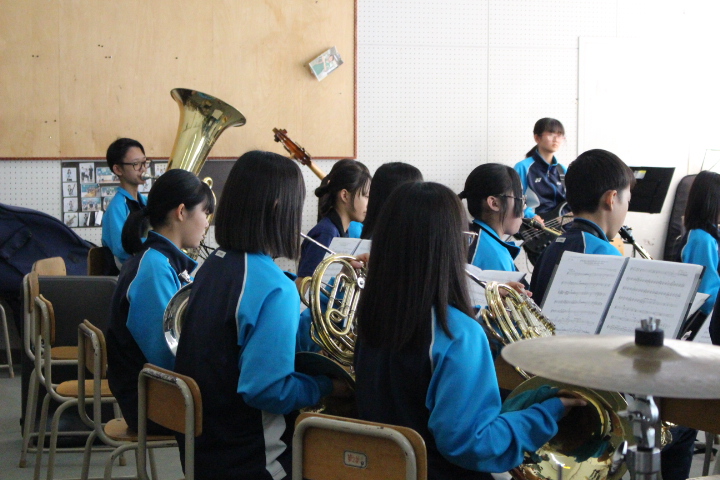 最初に訪問したのは伊達中、体育館やグラウンドでは活動がなく、音楽室に行くと、吹奏楽部が活動をしていました。3年生が引退し、見慣れた音楽室の風景なのですが、人数が減って淋しさを感じました。