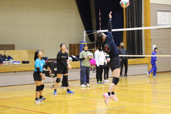 室蘭の栗林アリーナで行われた、カデットの全道大会。伊達中、光陵中から男子2名、女子6名がこの大会に参加しました。いつも見慣れた栗林アリーナなのですが、この日は選手と観客でアリーナ内がビッチリ。いつもであれば、どこかのコートで伊達中又は光陵中の選手が試合をしているのですが、なかなか試合をしている状況を見つけられず、本部席を訪ねに行くと、合同練習に指導に来てくれる顧問の先生方や地域指導者の方が大会運営の手伝いをしていてくれていて、すでに試合を終えた子、これから試合が始まる子のことなどを教えてもらいましたが、時間も流動的で、他の競技の大会もあることから、地域指導者の方々から「写真撮るよ!」と、ありがたい言葉をいただき、お願いすることにしました。