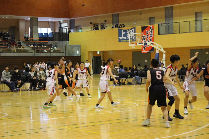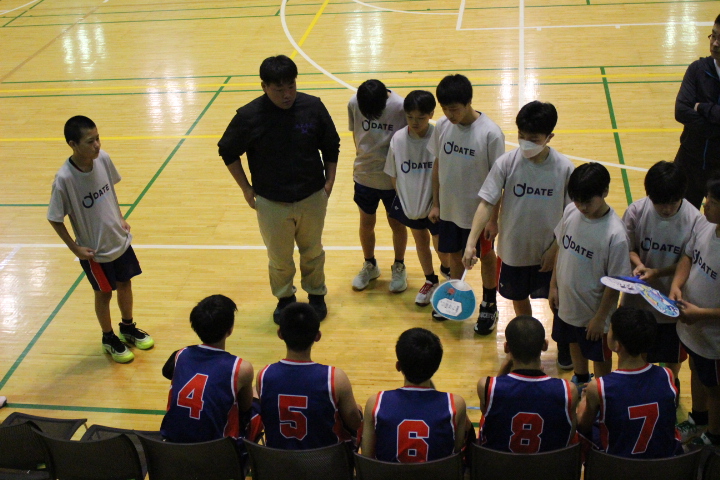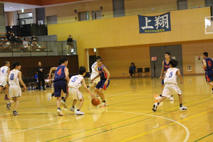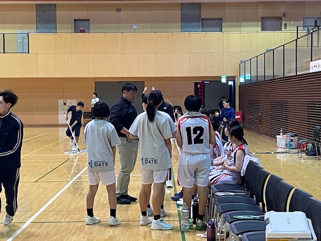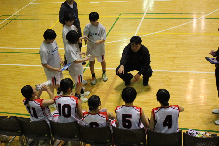初戦の翔陽戦では、追いつく場面、追い越す場面でのミスでがやはり出て負けてしまったので、勝ち上がるのはちょっと厳しいかなと思いながらも・・・。明日中戦では、序盤リードするものの、点数差が離れることのない大接戦。中盤明日中のペースになり、リードを許すも何とか1桁リードで後半戦へ。ここまでかなと思った部分もあったのですが、第三クォーターになりリードを奪うと、何とかわずかなリードを保ちながら、追いつかれても追い越されることなく終盤へ。後半明日中も、伊達中も焦りが出てきたものの、伊達中が終盤の終盤に連続してシュートが決まり、6点差を追付けて勝利。(この結果、男子は何と逆転1位で決勝トーナメント進出へ!)