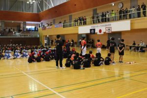 女子は、1日目は1勝1敗で、2日目の結果によって決勝トーナメントが決まる状況となって、2日目の第1試合に東明中戦が行われました。途中から試合を観戦させてもらったのですが、思った以上のロースコアで試合が進んでいて・・・。