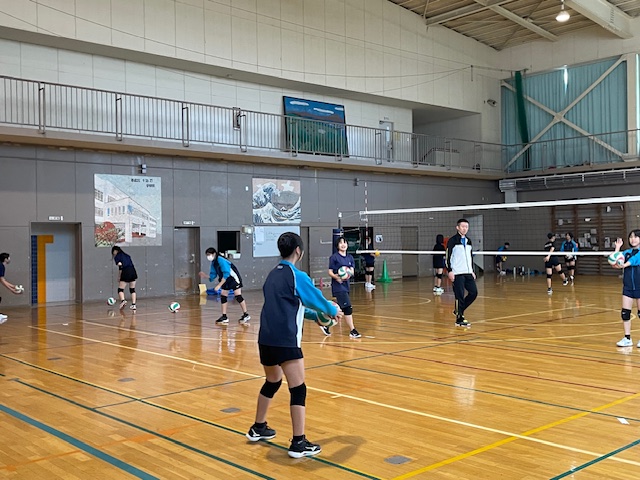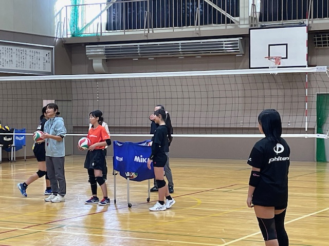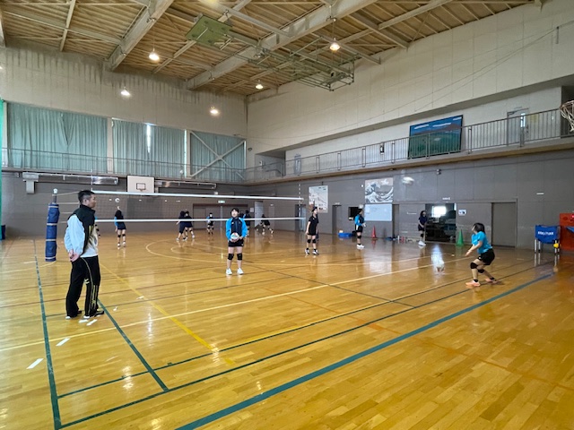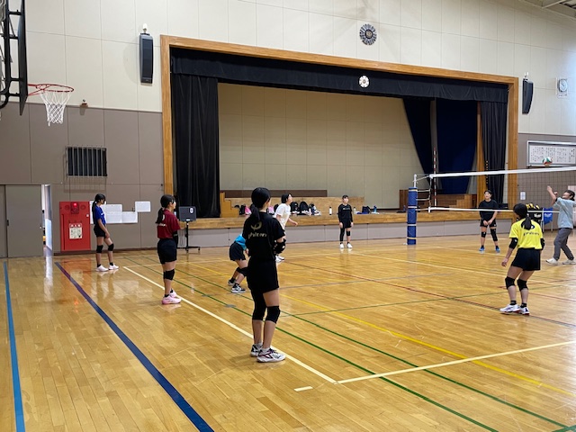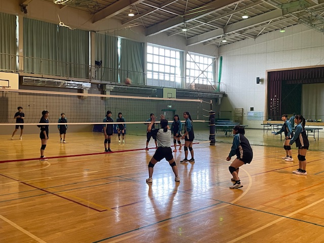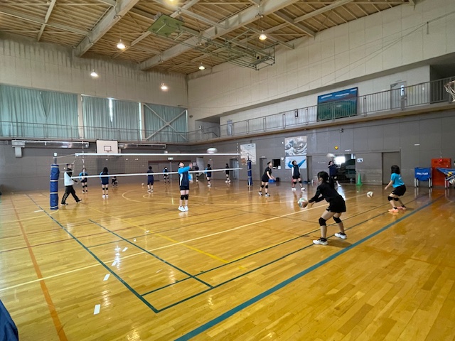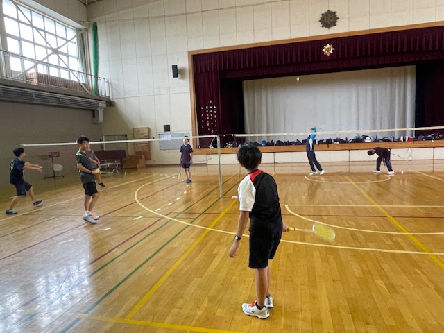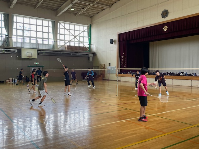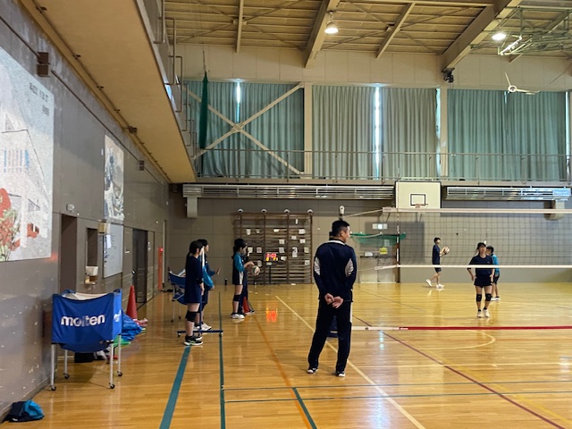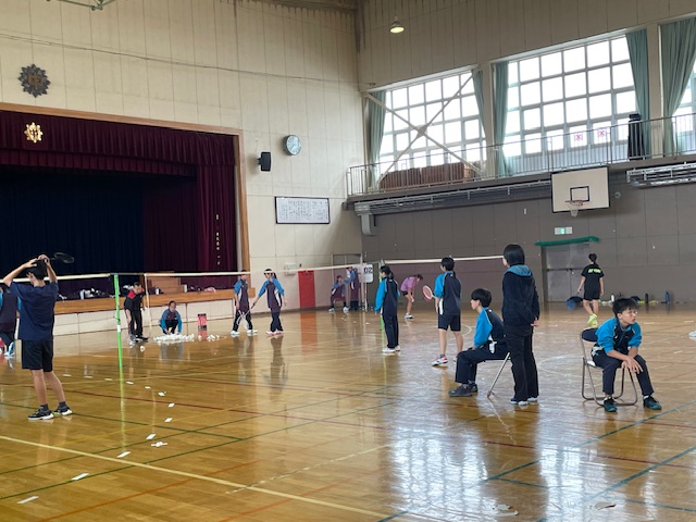 午後の伊達中体育館では、バレー部とバドミントン部が半面ずつ使って練習をしていました。午前中の体育館では練習がなかったのですが、午後は賑やかな練習風景になっていました。