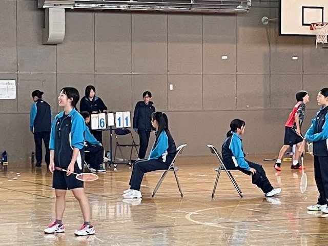 午後は、伊達中の体育館でバドミントン部が昨日に引き続き練習をしていました。新人戦を意識して、団体戦のメンバーを決めるためか、試合形式で練習をしていました。