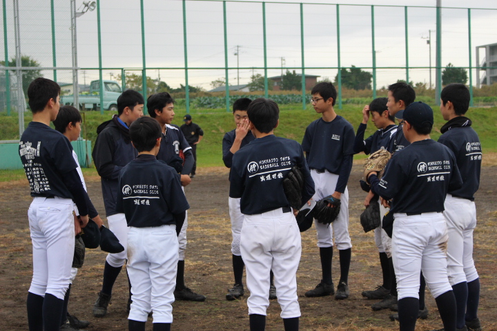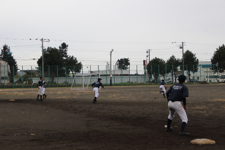 土曜日の試合予定だったのですが、天気予報が雨予報で、前日の金曜日に、翌日の日曜日に延期された商工杯野球大会。予定通りの開催であれば、千歳からのチームも参加予定だったのですが、延期されたことにより、伊達中・光陵中・余市町のクラブチーム3校での試合となりました。