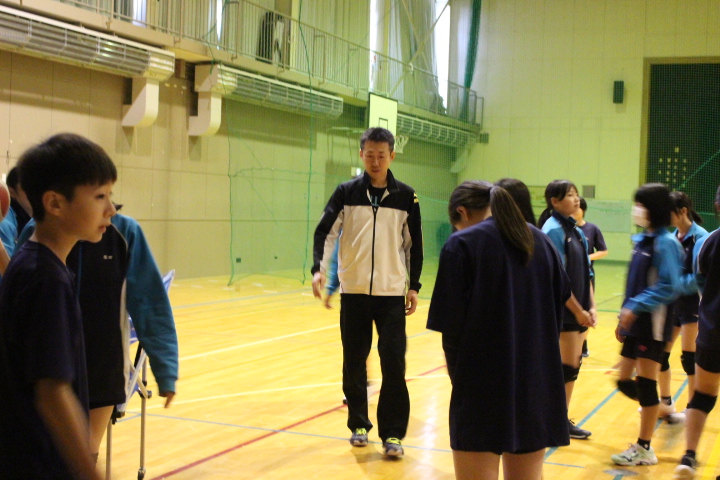 最初に伊達中の体育館に行くと、この日は前日に大会があったり、当日も講習会があったりして、珍しく学校での活動はありませんでした。光陵中に行くと、胆振西部のバドミントン部集まって、新人戦に向け審判講習等も兼ねながら、練習試合を行っていました。
