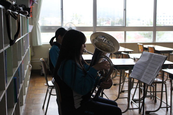 伊達中体育館に行くと、バレー部がいよいよ来週に迫った新人戦に向けて練習をしていました。音楽室では、吹奏楽部が練習をしていましたが、この日はパート練習が行われていて、いつもと違う練習風景を撮影することが出来ました。グラウンドでは、大会が延期になった野球部が、一時的に雨が止んでいたので、明日の試合に向けて練習をしているところでした。