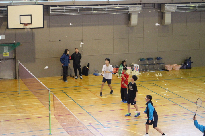 午後は、伊達中体育館での活動はなく、光陵中体育館では、引き続きバドミントンの練習試合、交流会が行われていました。