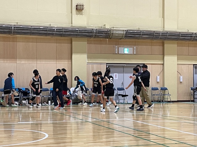 最初に登場したのが女子。対戦相手は室蘭西・星蘭の合同チーム。対戦相手は常に優勝争いをしているチームだけに、やはり序盤から苦戦。それでも第一クォーターは4-8と善戦。しかし、第二クォーターに10点差を付けられると、そこからズルズルと流れが悪くなりあっという間に20点まで差が広がってしまい・・・。第四クォーターは、巻き返したものの残念ながら29点差を付けられて敗退し、残念ながら全道大会進出とはなりませんでした。ただ、去年の今頃は100点ゲームをされていた相手なので、成長を感じた第3位でした。
