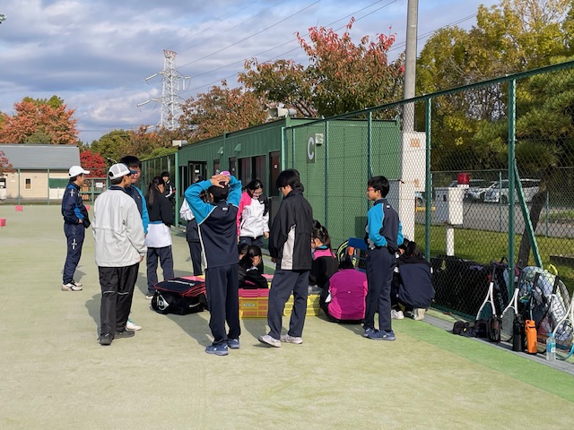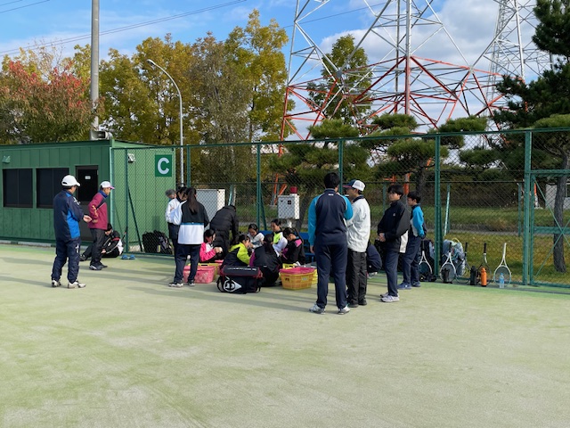 長和のテニスコートには、伊達中テニス部が集まっていて、練習を始めるところでした。新人戦で好結果を残せたことから、選手も地域指導者の方も、練習に取り組む意欲を感じました。