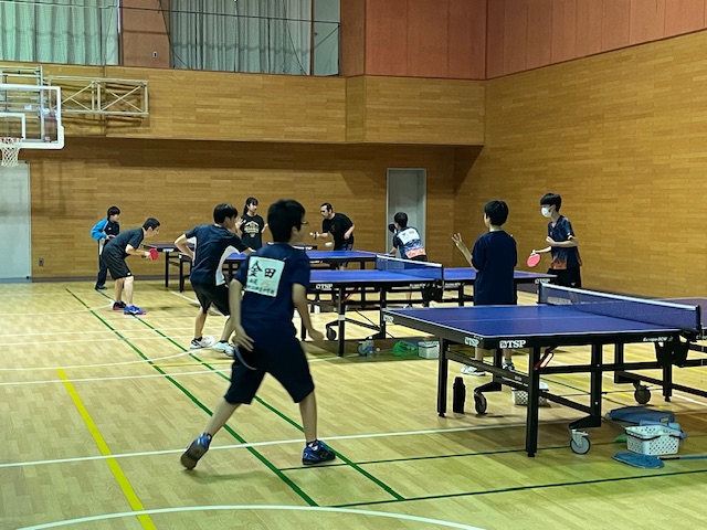 午後の総合体育館では、この日八雲中が来て、伊達中、光陵中と交流試合をする予定になっていましたが、光陵が活動停止になっていることから、伊達中卓球部と八雲中、地域指導者の方々と、男女関係なく交流試合をしていました。
