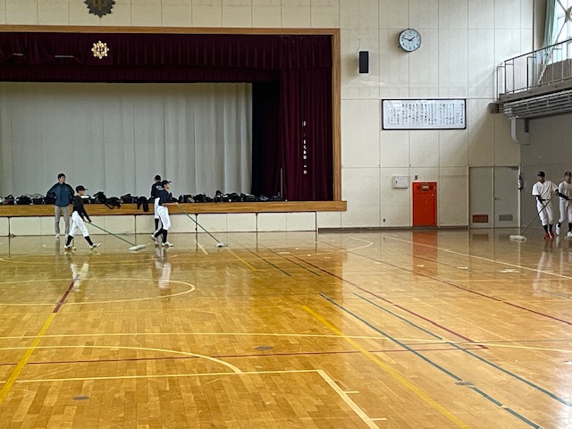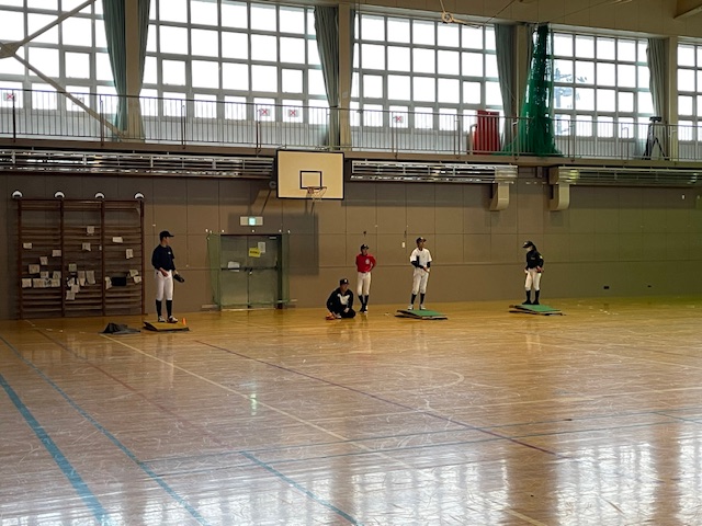 伊達中体育館では、野球部が他のクラブチームを交えながら、練習に取り組んでいました。本当は練習試合を予定していたと思うのですが、野球部もいよいよ、室内練習が本格的に始まります。