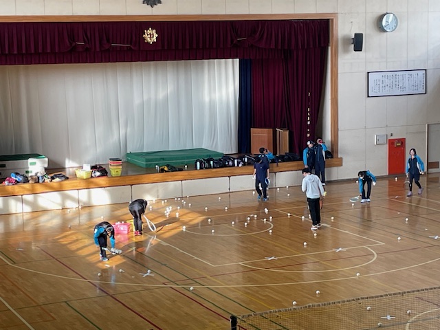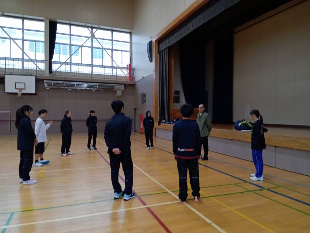 伊達中体育館にいくと、テニス部が富樫先生と地域指導者3名の指導のもと練習が行われていました。