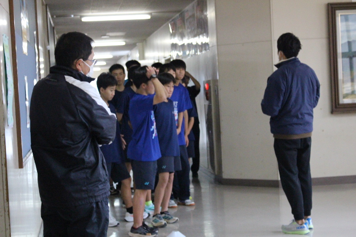 午後の光陵中体育館では、野球部が練習に取り組んでいました。伊達中体育館では、光陵同様翌日の大会に向け、バドミントン部が練習をしていました。