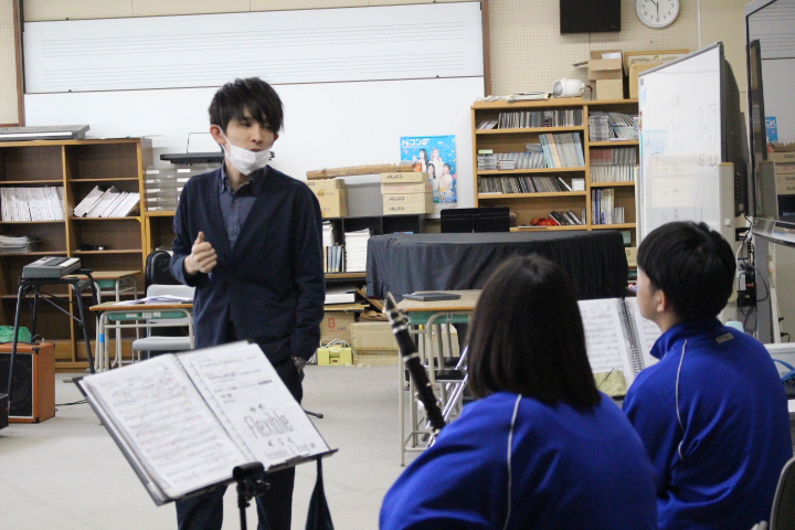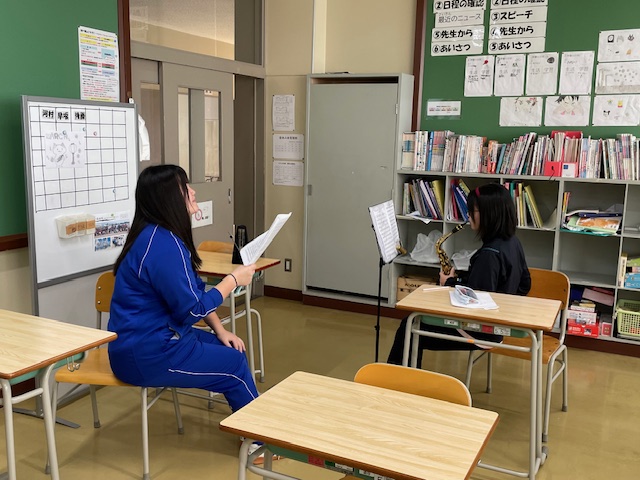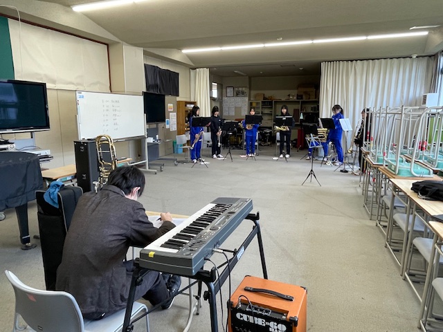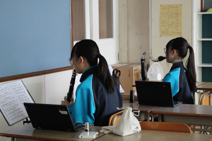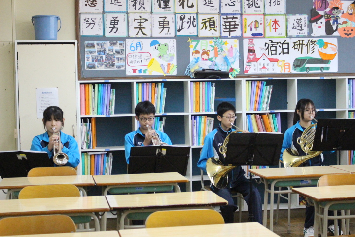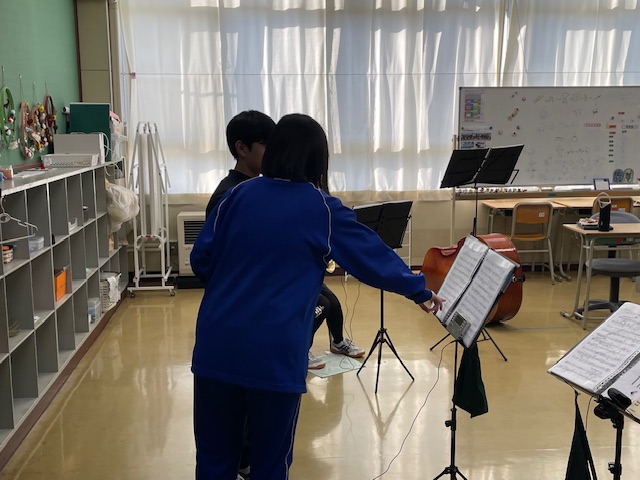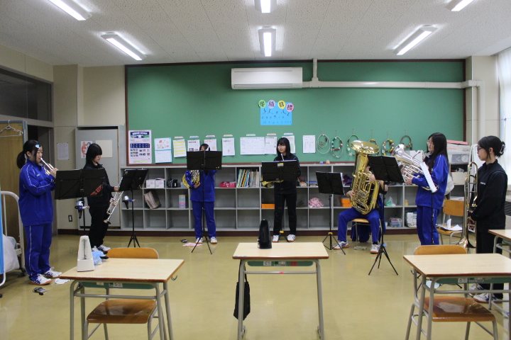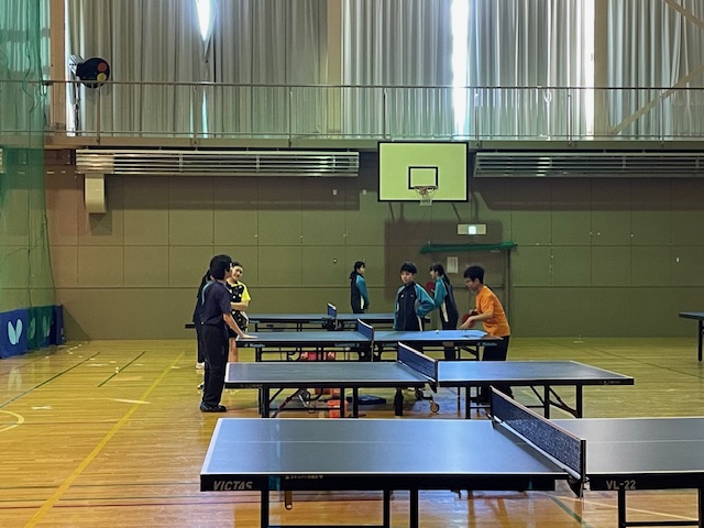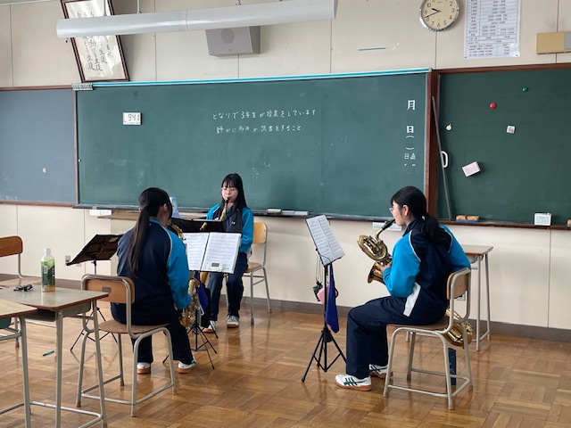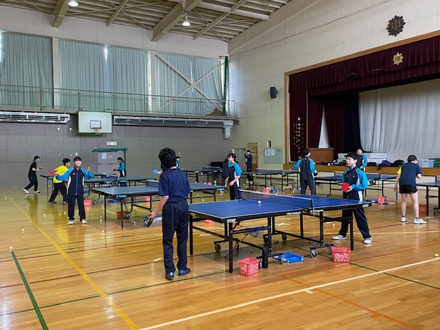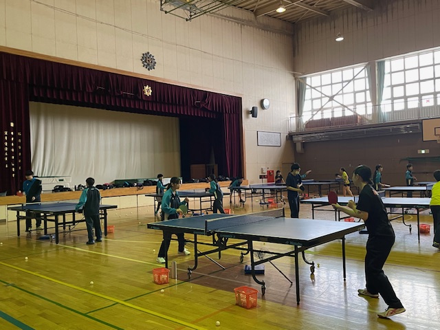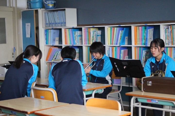 光陵中体育館では、この日は室桜蘭中を招いての練習試合が行われていて、半面では卓球部が練習をしていました。各教室では伊達中同様、吹奏楽部がパート練習をしていました。