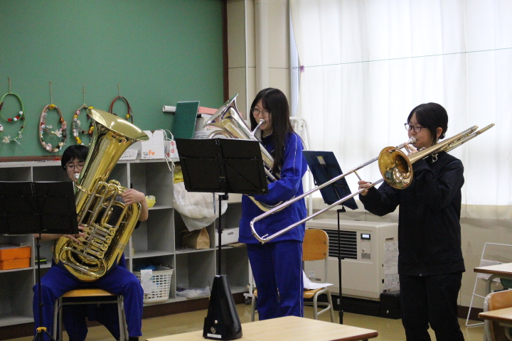 最初に光陵中に行ってみると、バドミントン部と卓球部が練習をしていました。バドは明日の大会に向けての最後の練習です。卓球部は年末の全道大会を目指して、練習に熱が入っていました。音楽室や周りの教室では、吹奏楽部がソロアンサンブルコンクールに向けて。各パートで時間を区切りながら、顧問の先生に演奏を聴いてもらいながら練習をしていました。