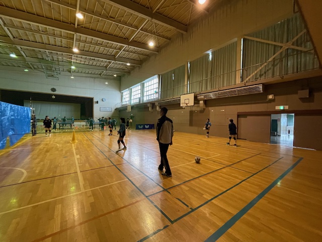 登別総合体育館では、3週に分かれて開催される「室蘭地区U-15後期リーグ」の第1週目の試合が行われました。前回の新人戦後、初の大会だったので、チームとしてどのようなところが成長してきているのかを見てみようと試合を観戦させてもらいました。