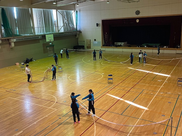 午後からは、光陵中では伊達中同様、バドミントン部が11/24(月)の試合に向けて練習をしていました。伊達中体育館でも練習が行われていて、卓球部とバレー部が半面ずつ使って練習をしていました。