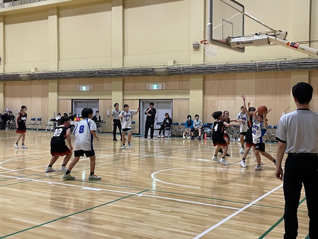 女子は、後半相手に走り切られてしまい、第4クォーターに残念ながら大きくリードを許すことになってしまい31-58での敗戦となりましたが、第3クォーター終了時点では、29-34と大善戦で、後半のスタミナとゴール下や制限エリア内でのシュートが入るようになるともっと強くなるように思いました。