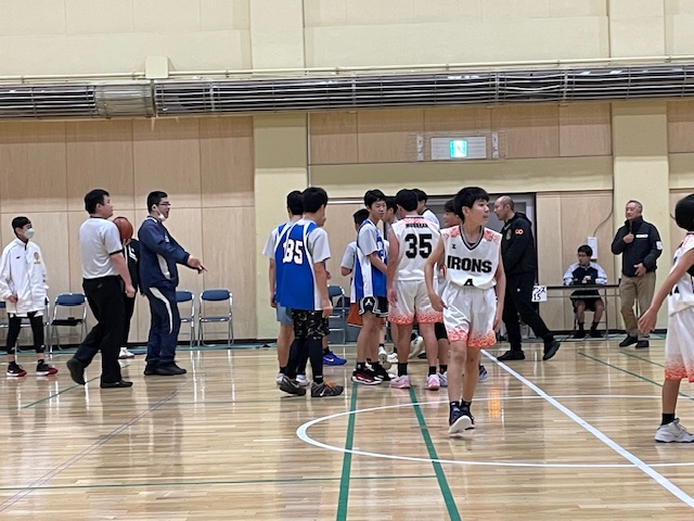 日曜日は、女子は初戦室東明中戦。各クォーター一時的にリードを許すことはあっても、最終的にはリードして終了し、48-31で快勝。男子も室翔陽戦は、58-35で快勝を収めましたが、今日の見どころは何と言っても男女とも優勝候補のアイアンズ戦。応援も兼ねながら興味深く見せてもらいました。
