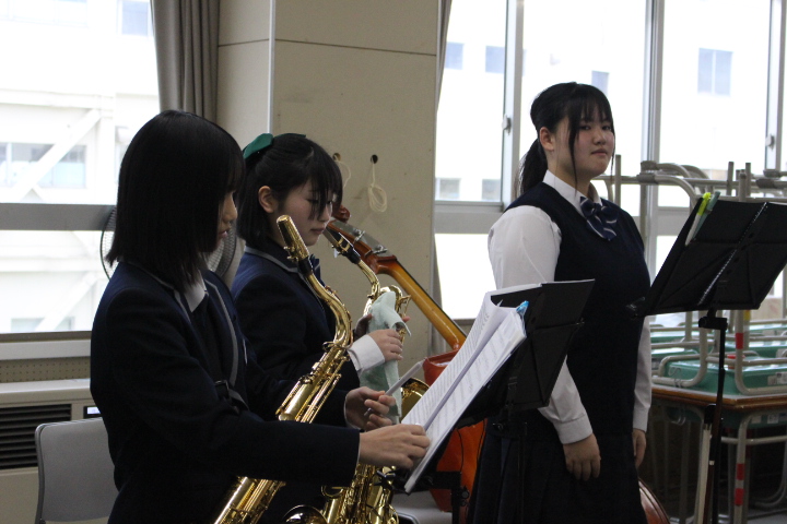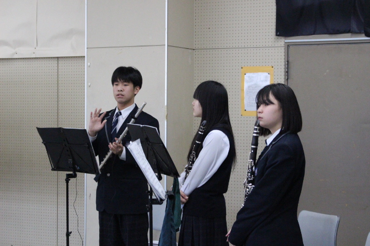 最初に伊達中体育館に行くと、バレー部が来週の大会に向けて練習をしていました。2チーム出場するため、両チームの細かい最終確認が行われていました。2階の廊下では、陸上部がオフシーズンのトレーニングに励んでいました。前週の水曜日には、光陵との合同練習にも取り組んだとのことでした。3階音楽室では、ソロアンサンブルコンクールに向け、各パートのソロ演奏が披露されていました。