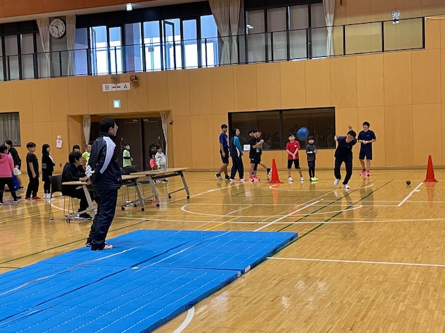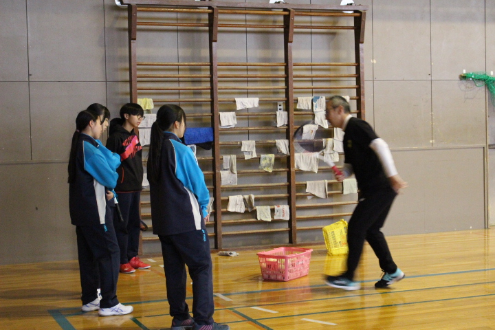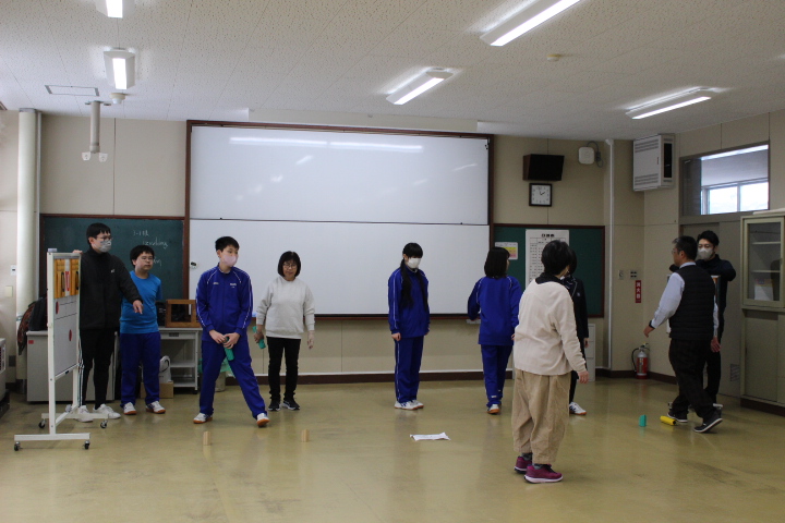 当日は、モルック協会の方2名が指導に来てくださって、先生方も交じりながら、2名ずつのチームに分かれ、対戦しながらもルックを楽しみました。