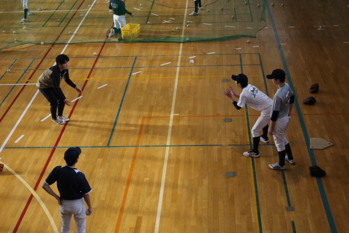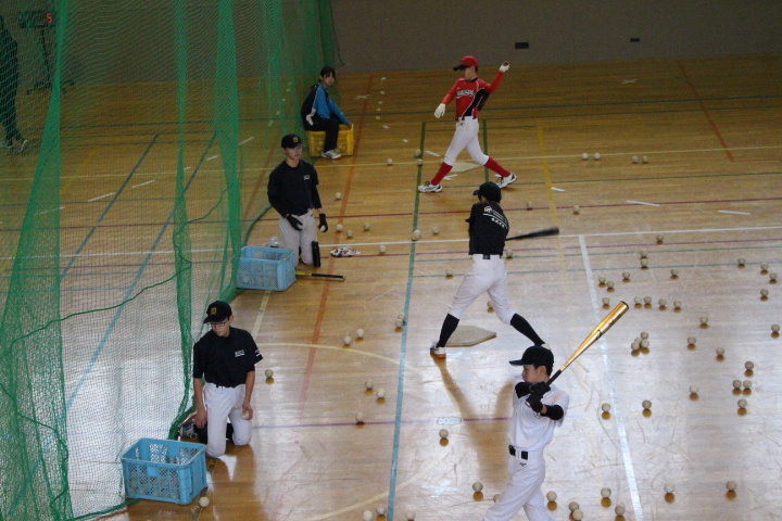 伊達中の体育館では、この日は珍しく中盤時間帯にも活動が行われ、野球部が活動をしていました。総合体育館では、サブアリーナで、この日もたくさんの地域指導者の方々が指導に当たってくれて、合同練習が行われました。