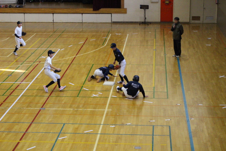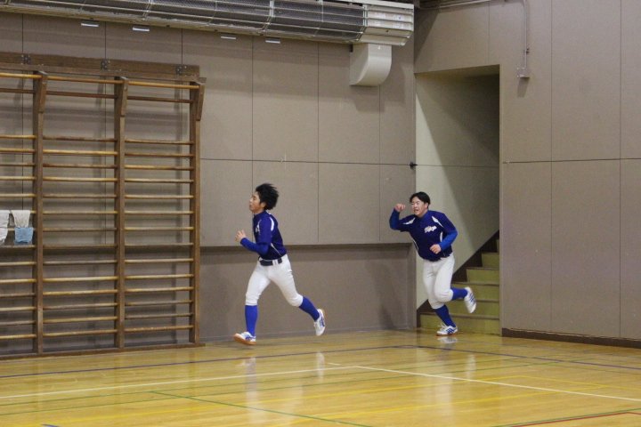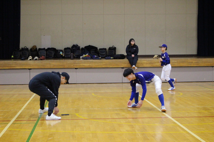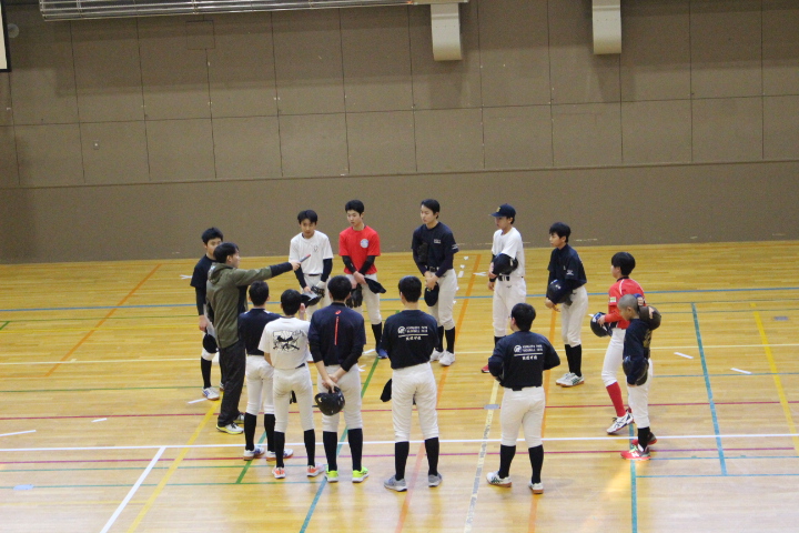 午後からは、伊達中体育館で野球部が練習に取り組んでいました。