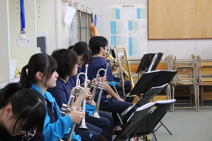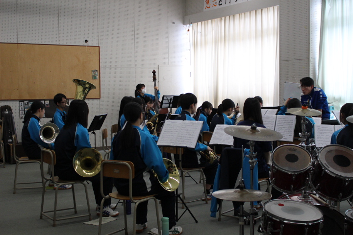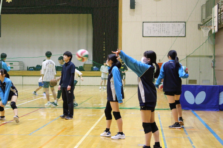 伊達中では、午前のAでは、テニス部が練習をしていました。2階の廊下に行くと、陸上部が走り込みをしていました。3階音楽室では、吹奏楽が全体練習をしていました。Bでは、卓球部が練習していました。総合体育館がバドの大会で使用できないため、単独で練習をしていました。午後のCの部では、来週の大会に向けバレー部と、先週大会を終えたバスケ部が半面ずつを使って練習をしていました。