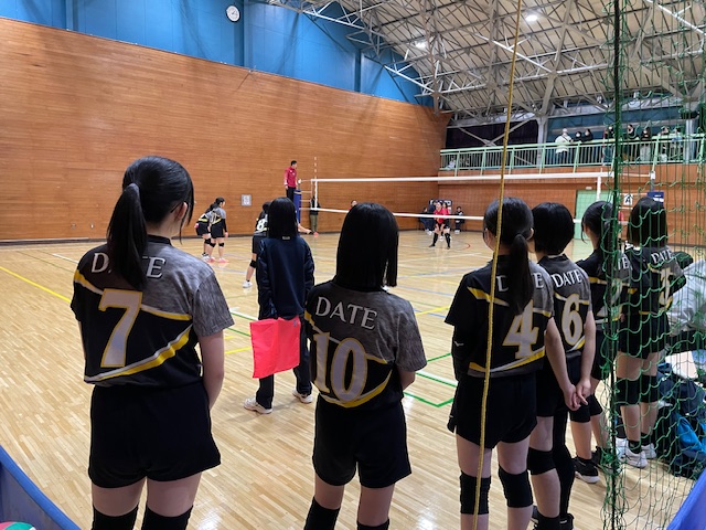 さて大会ですが、伊達中は予選リーグ初戦、秋の新人戦で負けた明日と対戦。残念ながらちょっとこの試合には間に合わなかったのですが、サーブが好調で、接戦になったようですが、20点前後で明日を抑え、見事リベンジを果たし、難なく初戦で決勝トーナメント進出を決めました。