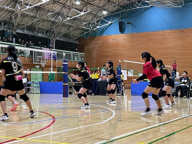 準決勝では、優勝したアルティミス室蘭と対戦。試合開始前、相手のスパイク練習を見て圧倒されていた感じを受けたのですが、やはり序盤から劣勢のままスタート。もう少し練習すれば、あれくらいになるのに、動きを止めて見てしまっていたのがちょっと・・・。