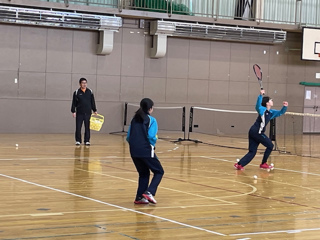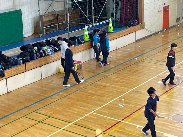 そんな中、伊達中体育館では、午前Aでテニス部が練習をしていました。地域指導者の方が5名ほど指導に当たってくれていました。この日は、テニス部だけで、先週2日続けて大会だったバド部は練習がお休みでした。