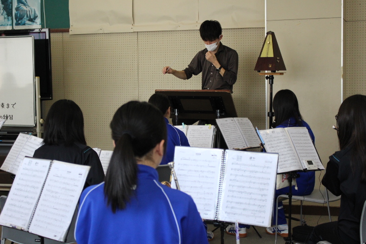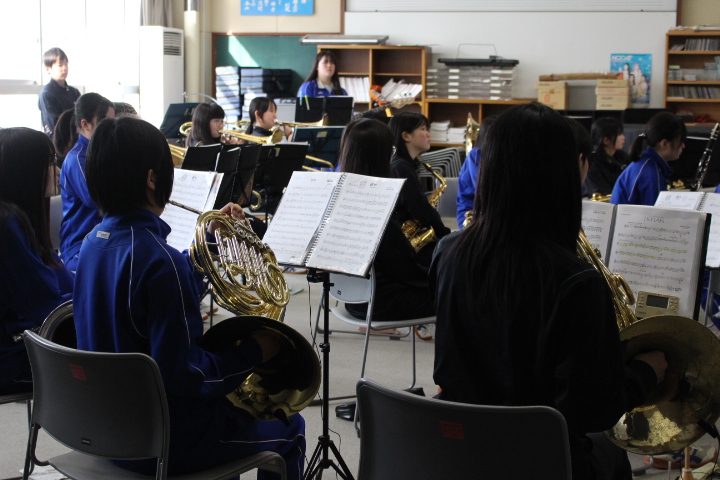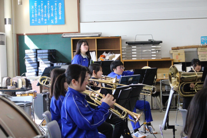 音楽室では、吹奏楽部が練習をしていました。吹奏楽部の生徒と顔を合わせるのも、学年閉鎖の関係で久しぶりでした。