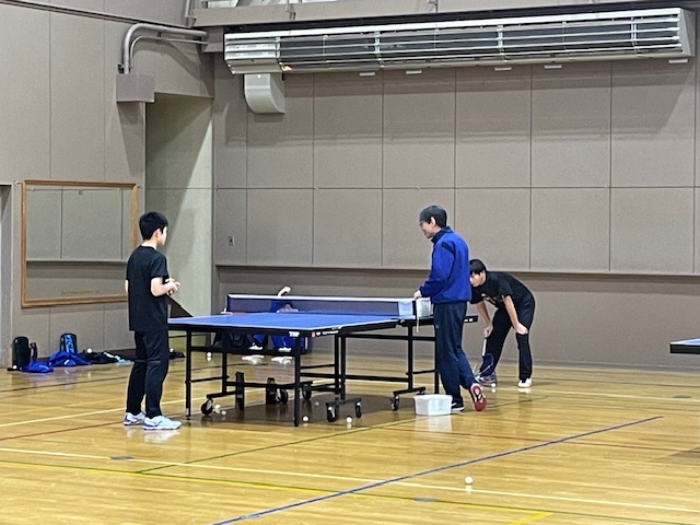 午後の体育館では、バレー部が練習をしていました。松下先生は、午前と午後のダブルヘッターの練習でした。総合体育館では、卓球の合同、伊達中がいないので少年団との合同練習を行っていました。