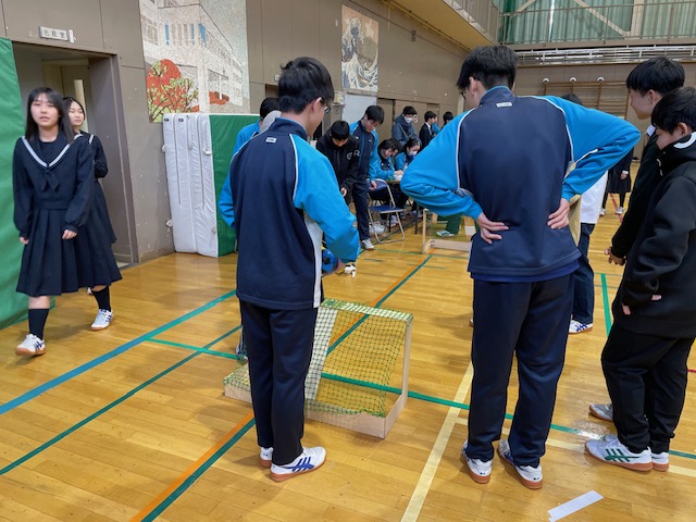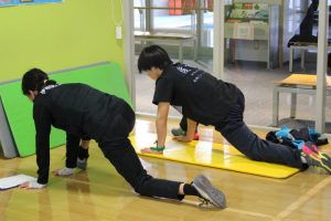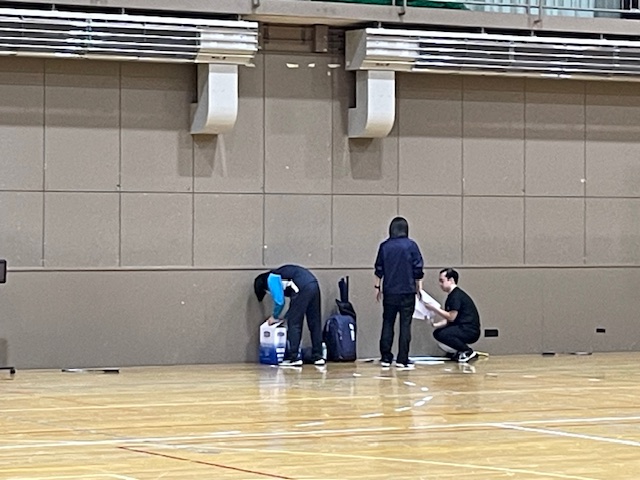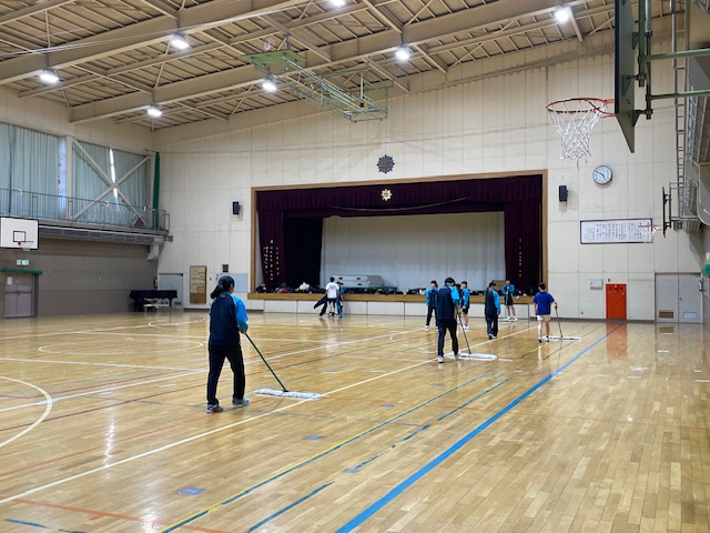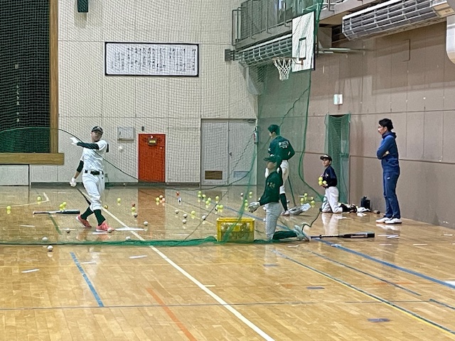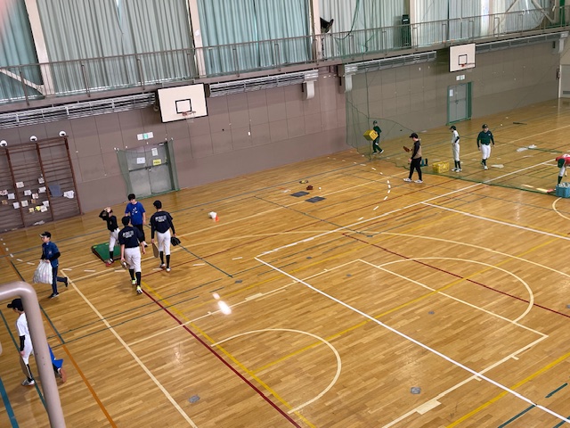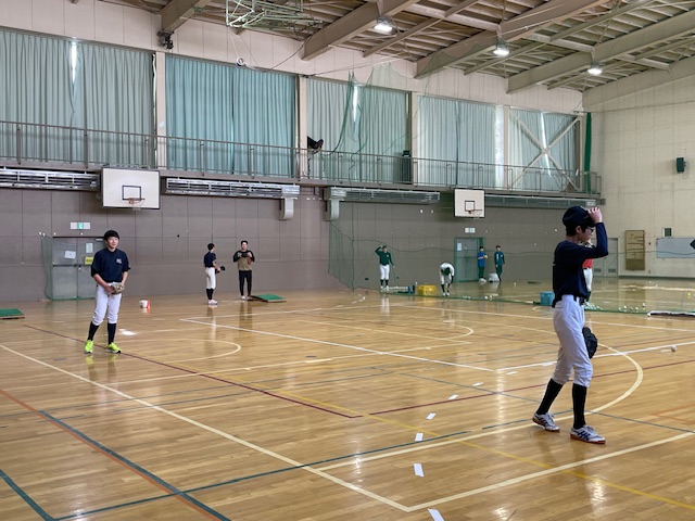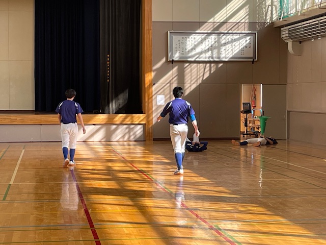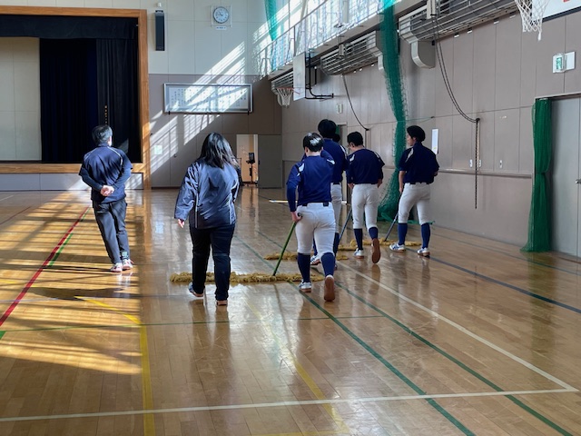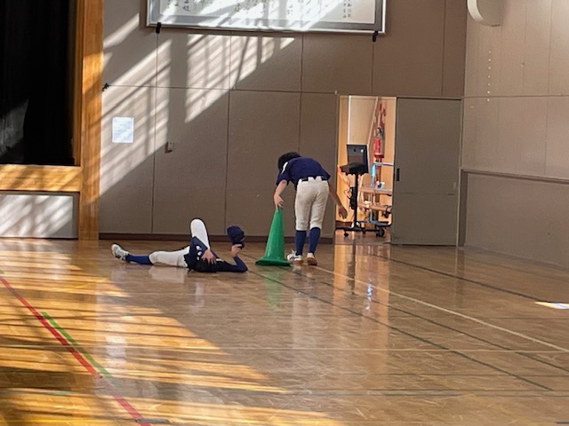 伊達中に戻ると、今度は野球部が体育館で練習を行なっていました。
