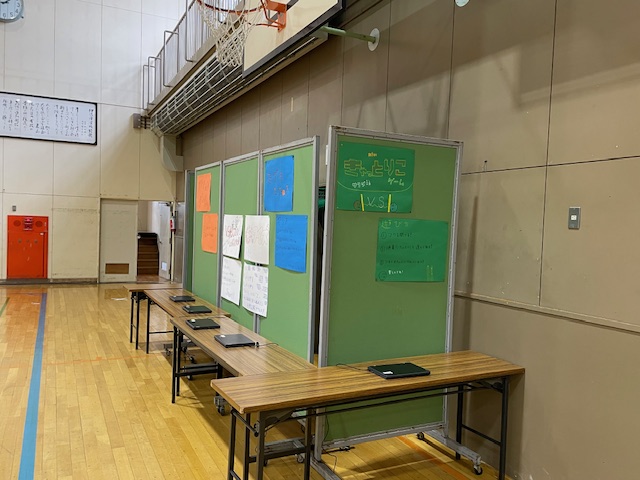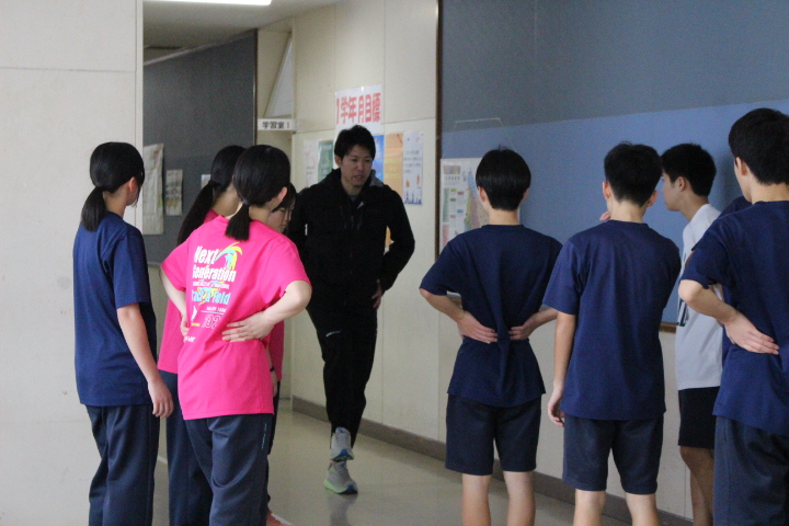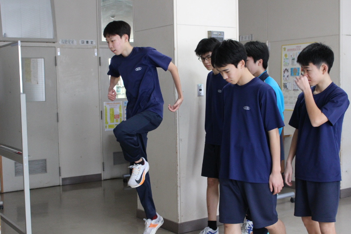 伊達中では、午前中文化部の発表会のための会場づくりや発表のリハーサルが、体育館を中心に行われていました。廊下では唯一陸上部が、練習をしていました。