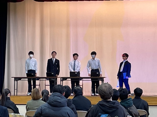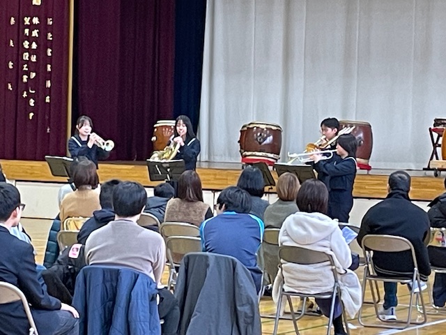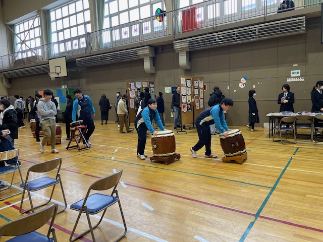 用事があって、昼から体育館事務省に行くと、机の上に伊達中文化部の発表会のプログラムが上がっていて、思わず今日だったか? 虫の知らせだったのでしょうか、昼から事務所に来て正解で、即会場に向かいました。カルチャーに行こうとしたら、伊達中が会場だと聞かされ、慌てて伊達中に向かいました。残念ながら太鼓の演奏には間に合わなかったのですが、吹奏楽のアンサンブルの演奏やPC部の寸劇、吹奏楽部の合同演奏や美術部、科学部、PC部の作品や実演を見せてもらうことができました。