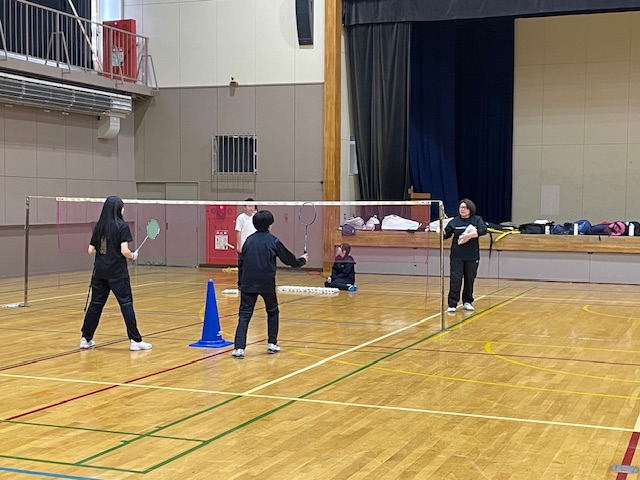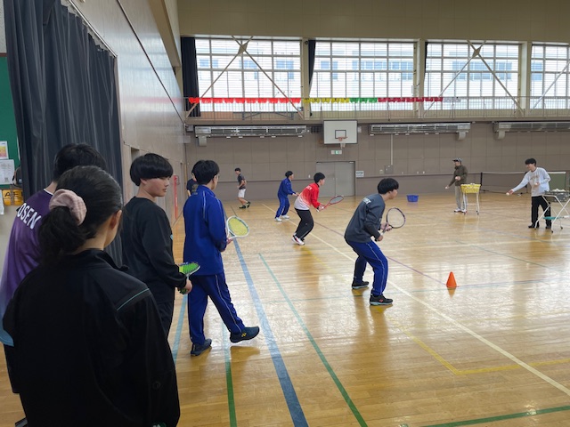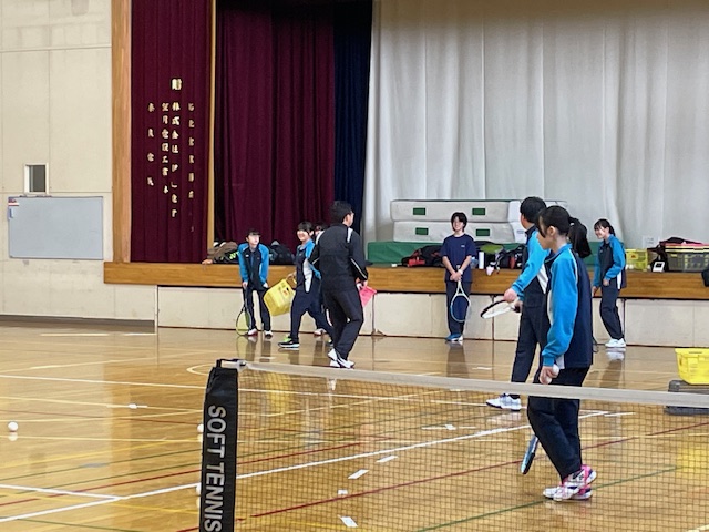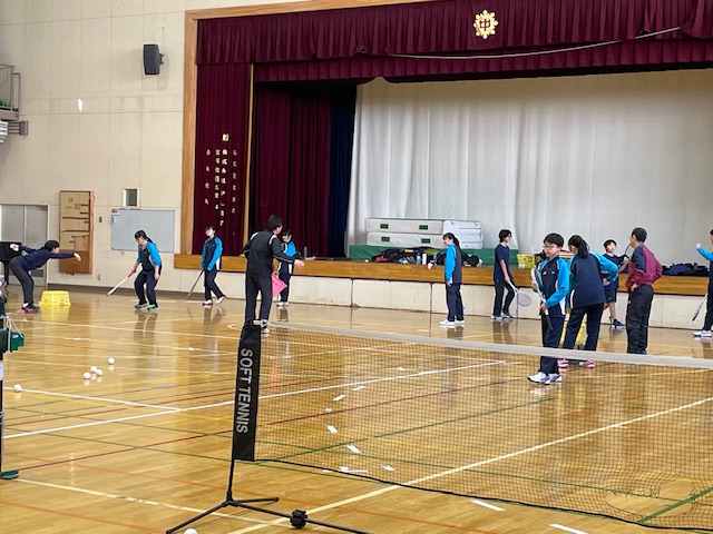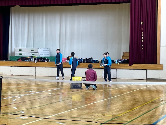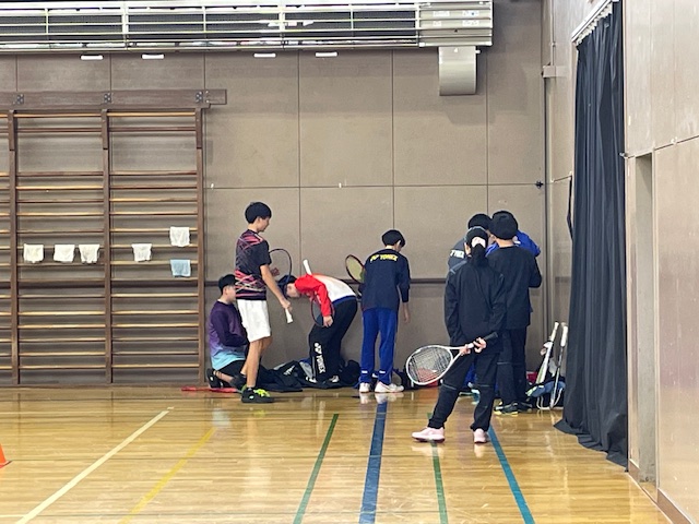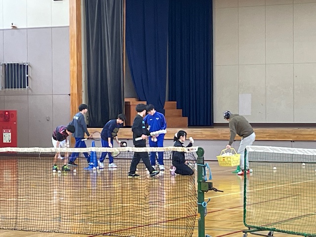 伊達中体育館に行くと、テニス部が練習をしていました。残念ながらインドア大会は中止になってしまいましたが、この日も地域指導者の方が3名ほど来ていて、練習を見てくれていました。