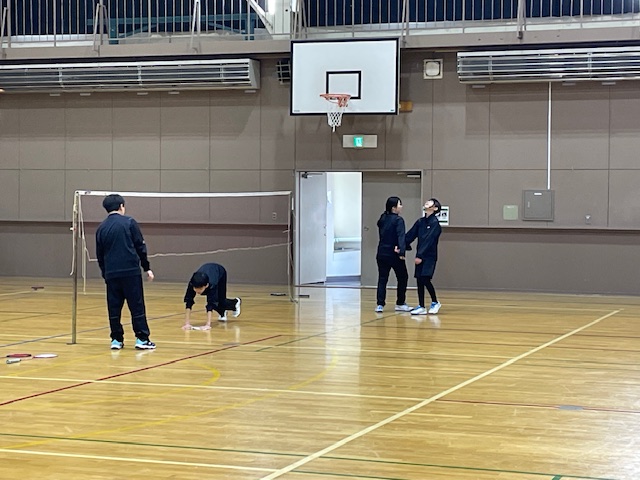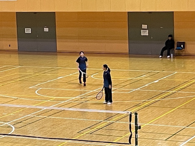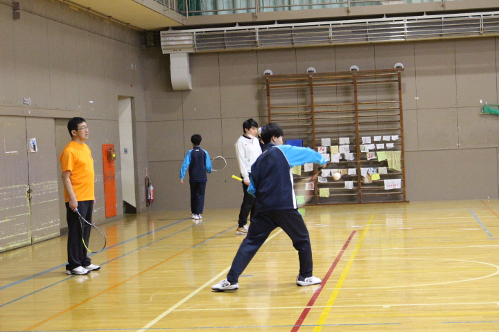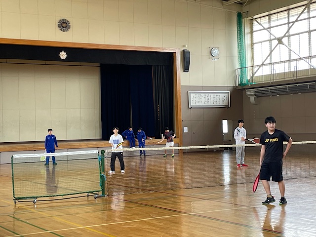 午後は、伊達中も光陵中も引き続き野球の練習試合が行われていました。光陵中体育館では、木村先生指導の下、テニス部が練習をしていました。伊達中体育館では、バド部が3年生を招待して最後の練習をしていました。