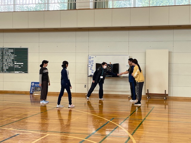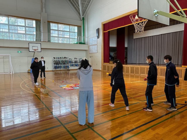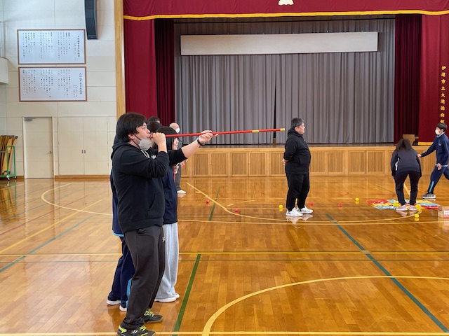 なかなか他の学校ではこのような種目に取り組めないのですが、徳舜瞥は施設の訪問とかも実施しているので、訪問した際に、施設の方々と一緒に楽しむこともできる種目としてピックアップさせてもらいました。どの種目も、車椅子に座っていても可能な種目で、先生方も熱心に一緒になって体験してくれていました。