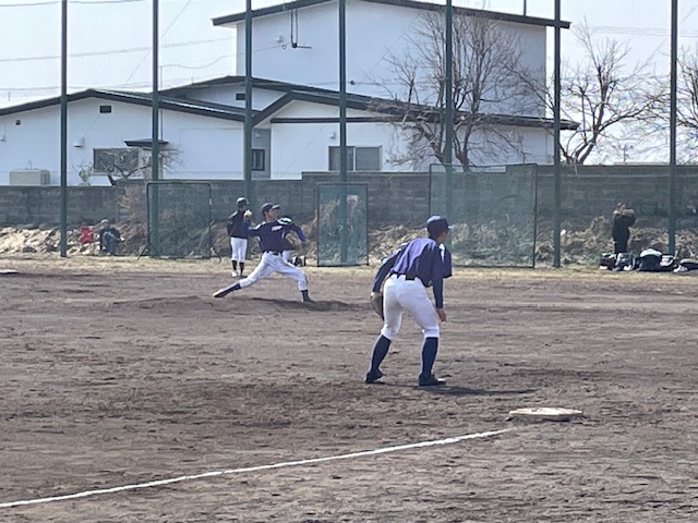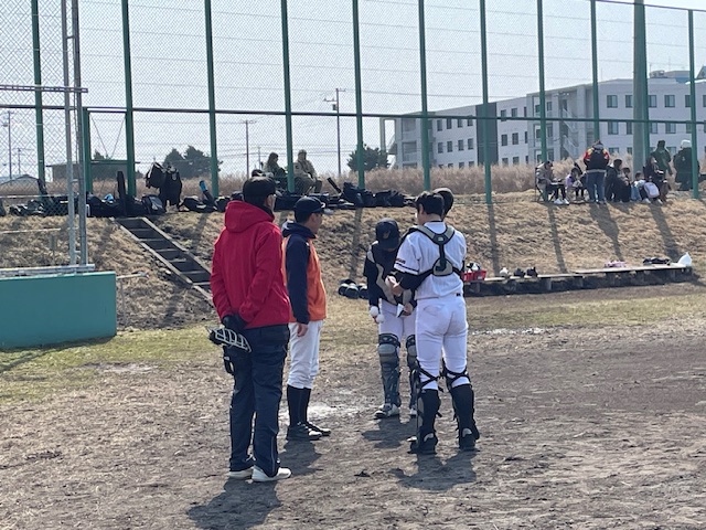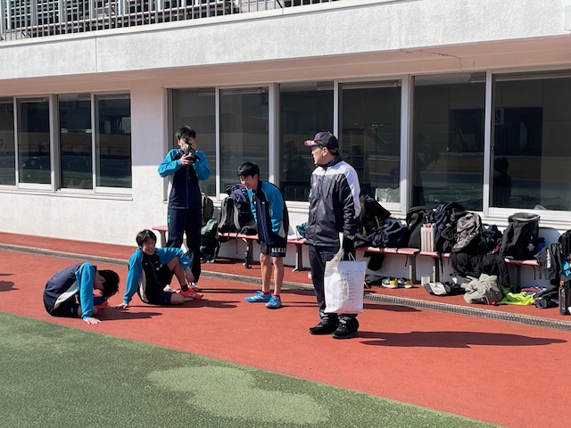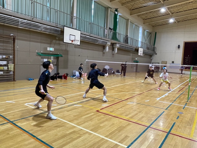 光陵中グラウンドに行くと、練習試合が行われていました。旭川と札幌のチームが来校しての練習試合だそうで、前日に比べ暖かく、選手も保護者も動きやすそうでした。体育館ではバド部が地域指導者の方が2名来校されていて、3つのグループに分かれ練習を行っていました。
