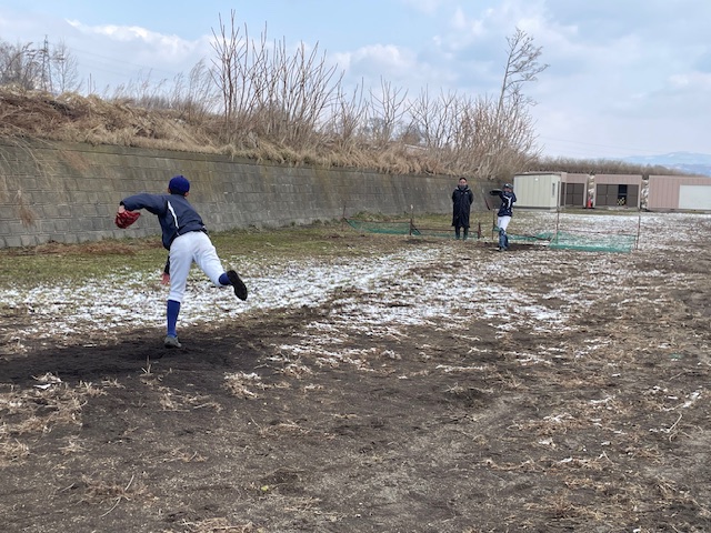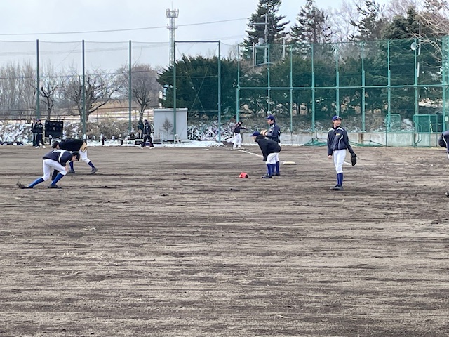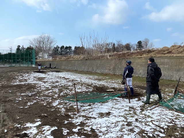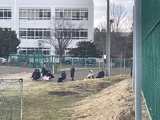 この日は、前日とは打って変わり、朝には晴れていましたが、前日の夜から雪が降り、一面真っ白な状況で、朝の気温もマイナスになっていました。野球の練習試合とかはあるのだろうかと思いながら光陵中グラウンドに行くと、旭川からのクラブチームが来校していて、試合時間を遅らせるかたちで、練習試合を行うとのことでした。光陵中は、午前は野球しか活動がないようでした。伊達中でもやっているのかな? と思いながら伊達中に行くと、伊達中では練習試合を中止したようで、グラウンドには人はいませんでした。