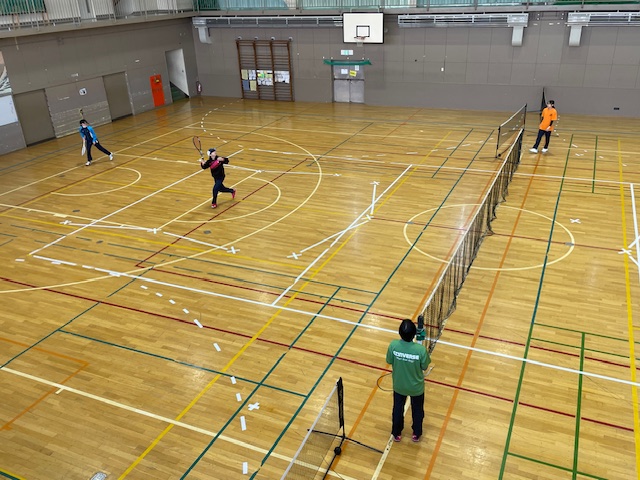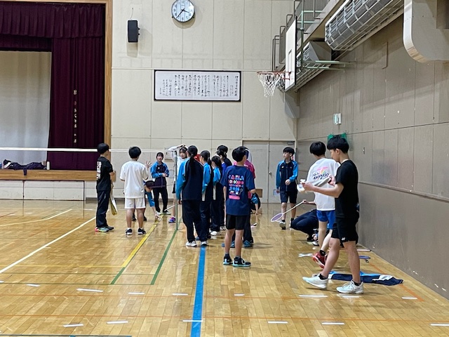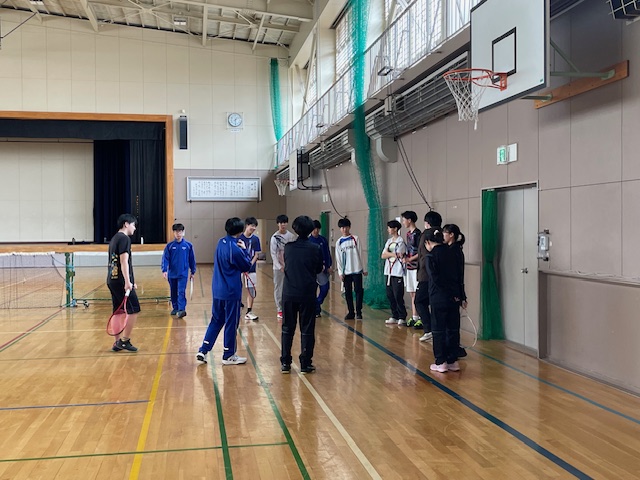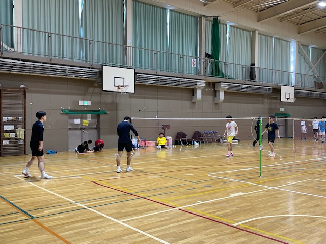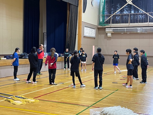 体育館に行くと、バドミントン部が練習をしていて、村上先生の方から話をしに来てくれて、JR北海道の選手が、室蘭協会からの要請を受けて、伊達中バドミントン部の指導のために来校していただという話をしてくれました。来校してくれた2名は、室蘭協会の中学校の出身選手なのだそうですが、そのうち1名は、豊浦中学校の加藤選手でした。加藤選手と私は、豊浦中学校の入れ替わりで、礼文華小にいた時に、活躍を知っていて、少し話をさせてもらって、来年度以降、藍の指導者として、指導に来ていただいたり、オンラインで指導をしていただいたりしてもらえないか相談したところ、快く引き受けてくれることとなりました。(次年度以降楽しみです!)