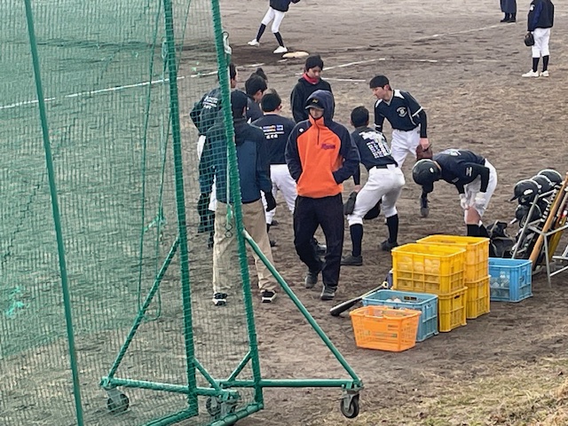 午後、光陵中に行ってみると練習試合は終わっていました。寒かったので、1試合で終えたんだなと思って、伊達中グラウンドに行くとたくさん車が止まっていたので、午後から練習にしたのかと思ったのですが、午前中光陵で練習試合を行っていた旭川のクラブチームが、急遽伊達中の練習試合の相手が来なくなったことから、伊達中と練習試合をすることになったようで、たくさんの保護者の方々が見学に来ていました。光陵中でもそうでしたが、選手やチームスタッフも寒かったと思いますが、保護者の方々も寒い中たくさん応援に来ていただいて、頭が下がります。体育館に行ってみると、バスケ部が春休みの練習試合に向けて練習を行っていました。総合体育館では、今年度最後の合同練習が、メインアリーナで行われました。午後は午前に比べ少しだけ暖かくはなりましたが、この日はとにかく寒い一日でした。